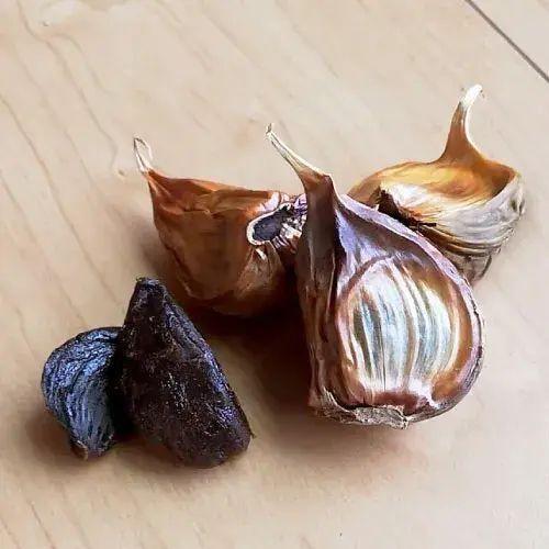 にんにくは、高温・高湿度で熟成が進むにつれて真っ黒になり、ドライフルーツのような甘みと食感に変化します。